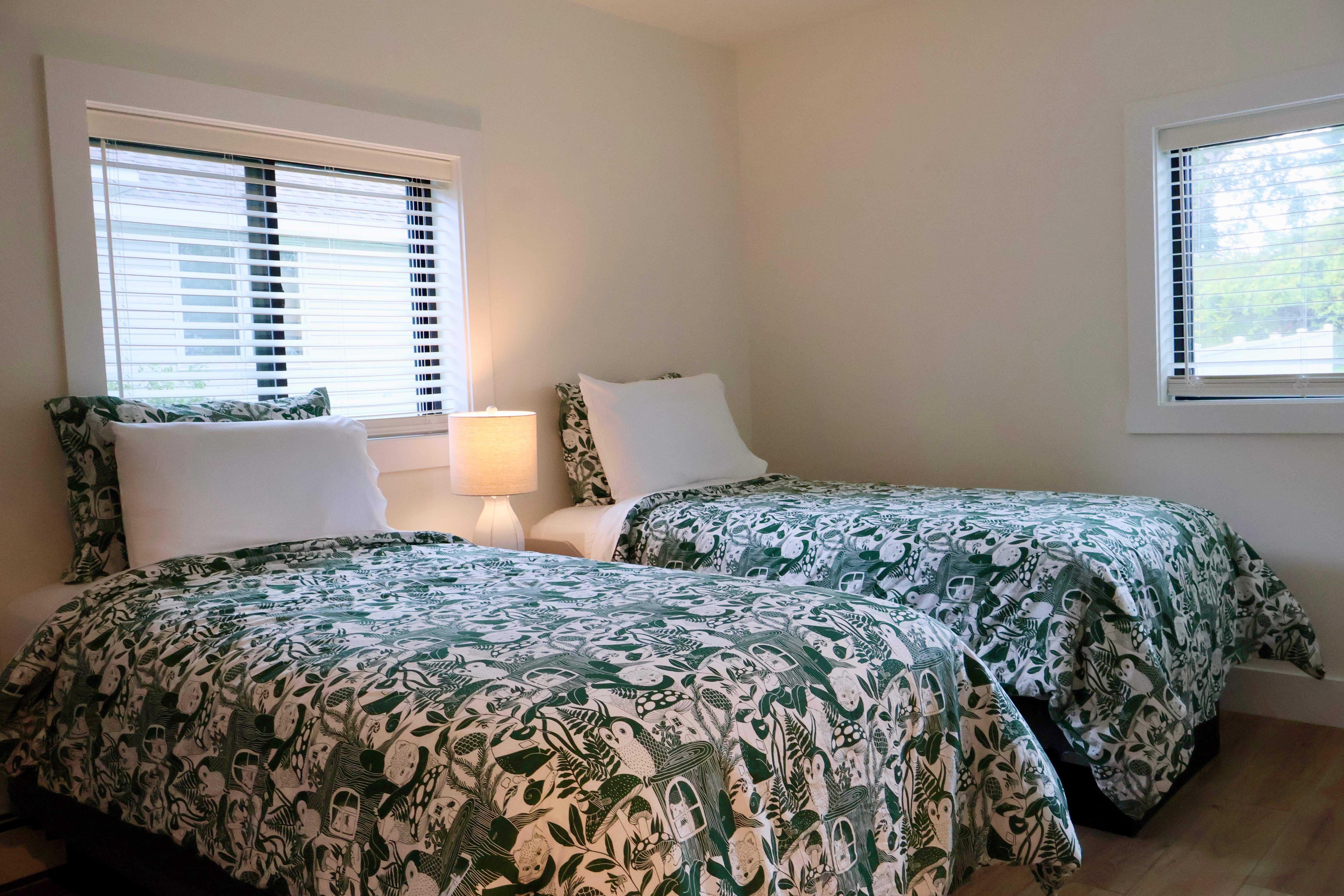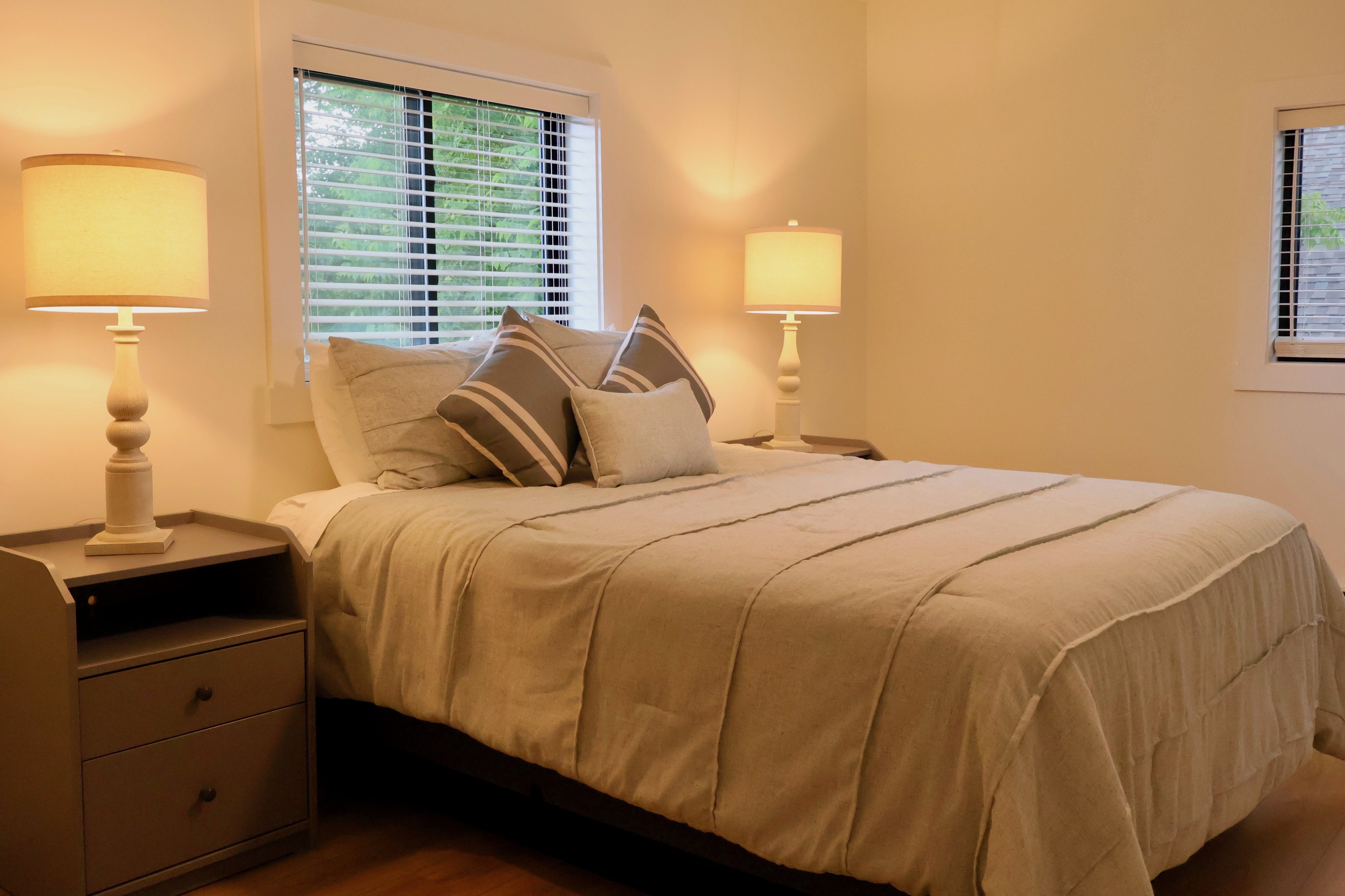 Each cabin has 2 bedrooms, a full kitchen, charcoal grills and a fire pit.